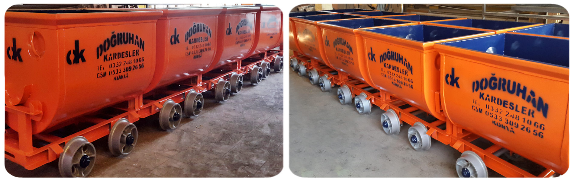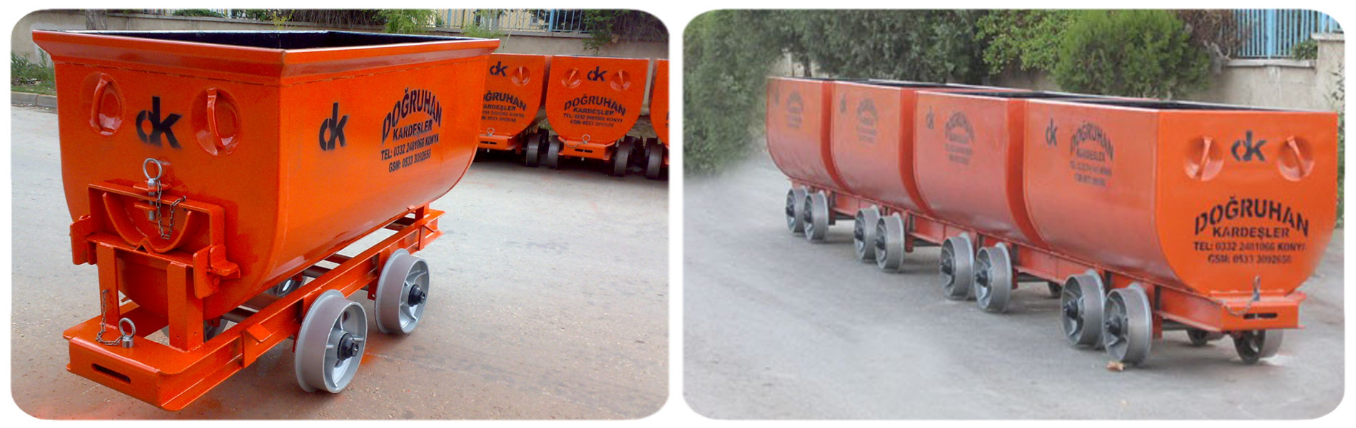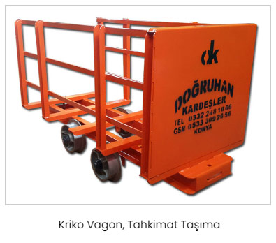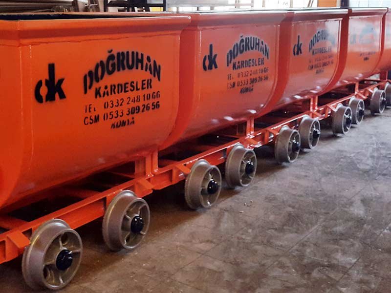 İmalatını yaptığımız vagonlarla kömür, maden, kum ve çakıl taşıması yapılır. Özellikle maden ve kömür işletmeleri için imal edilmiştir. Devirmeli tip vagonlar 750 Kg ve 1000 kg kapasiteye sahiptir.